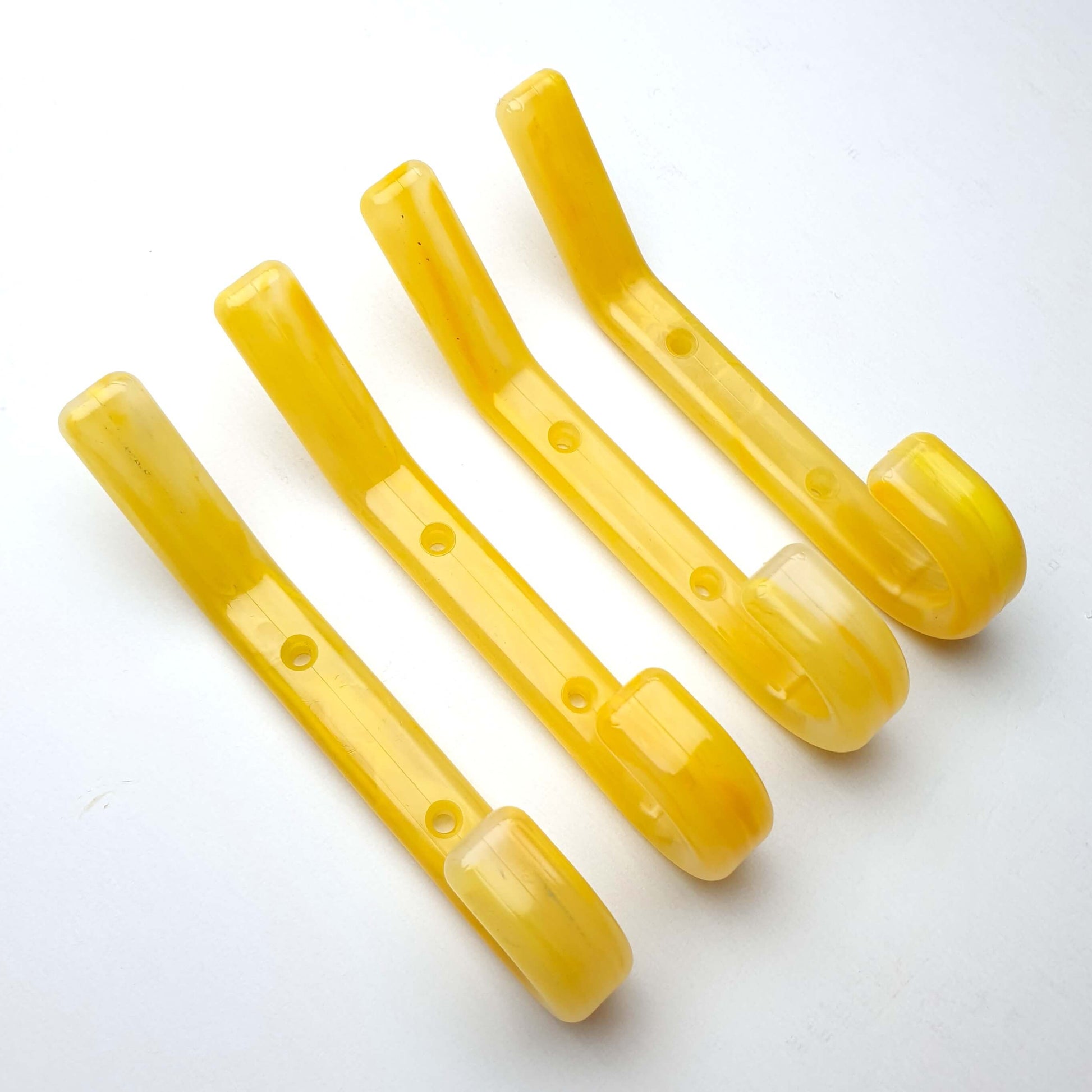 Knaggi tåler hverdagens bruk og henges opp med to skruer som du får med når du bestiller knaggi fra Plasteriet.