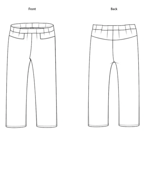 Passform: Mønsteret har 6 cm ledighet inkludert i hoftemålet. For en smalere modell, eller om du bruker stoff med stretch, kan du trygt gå ned en størrelse.