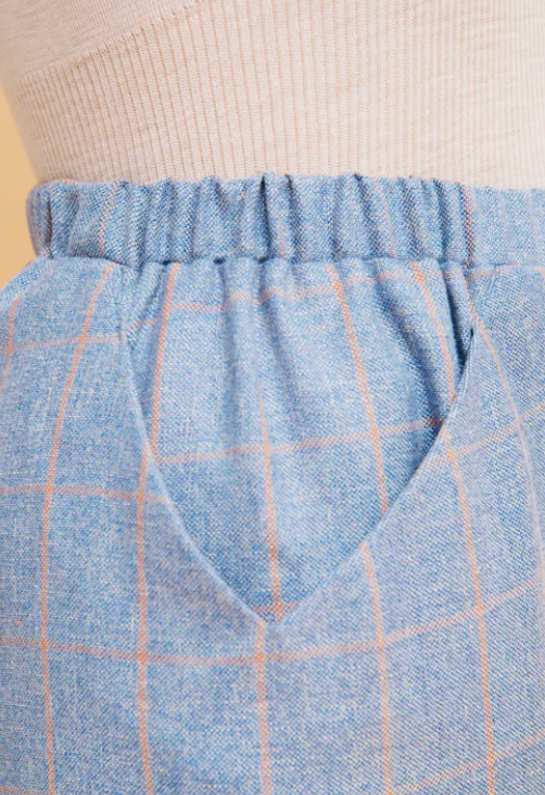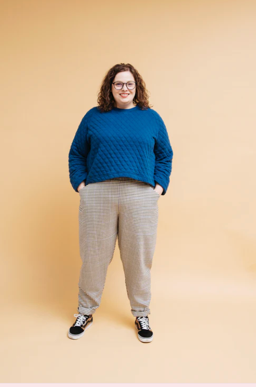Ivo er en fin og behagelig bukse med strikk i midjen. Den har morsomme lommer i sidene og er enkel å sy. Mønsteret har 6 cm ledighet lagt til hoftemålet i str 32-46 og 8 cm ledighet i str 48-64. Dette mønsteret finnes også til barn.
