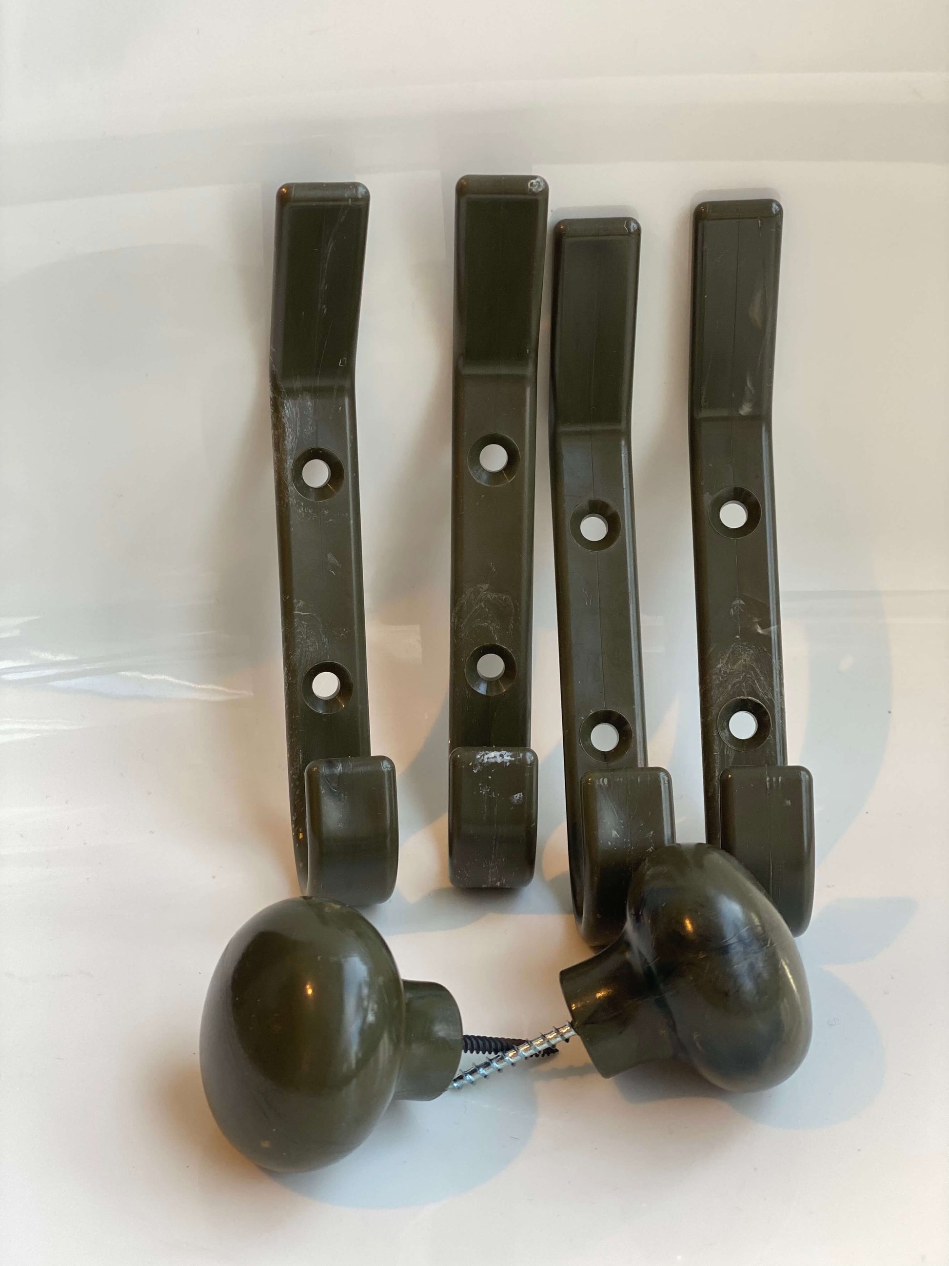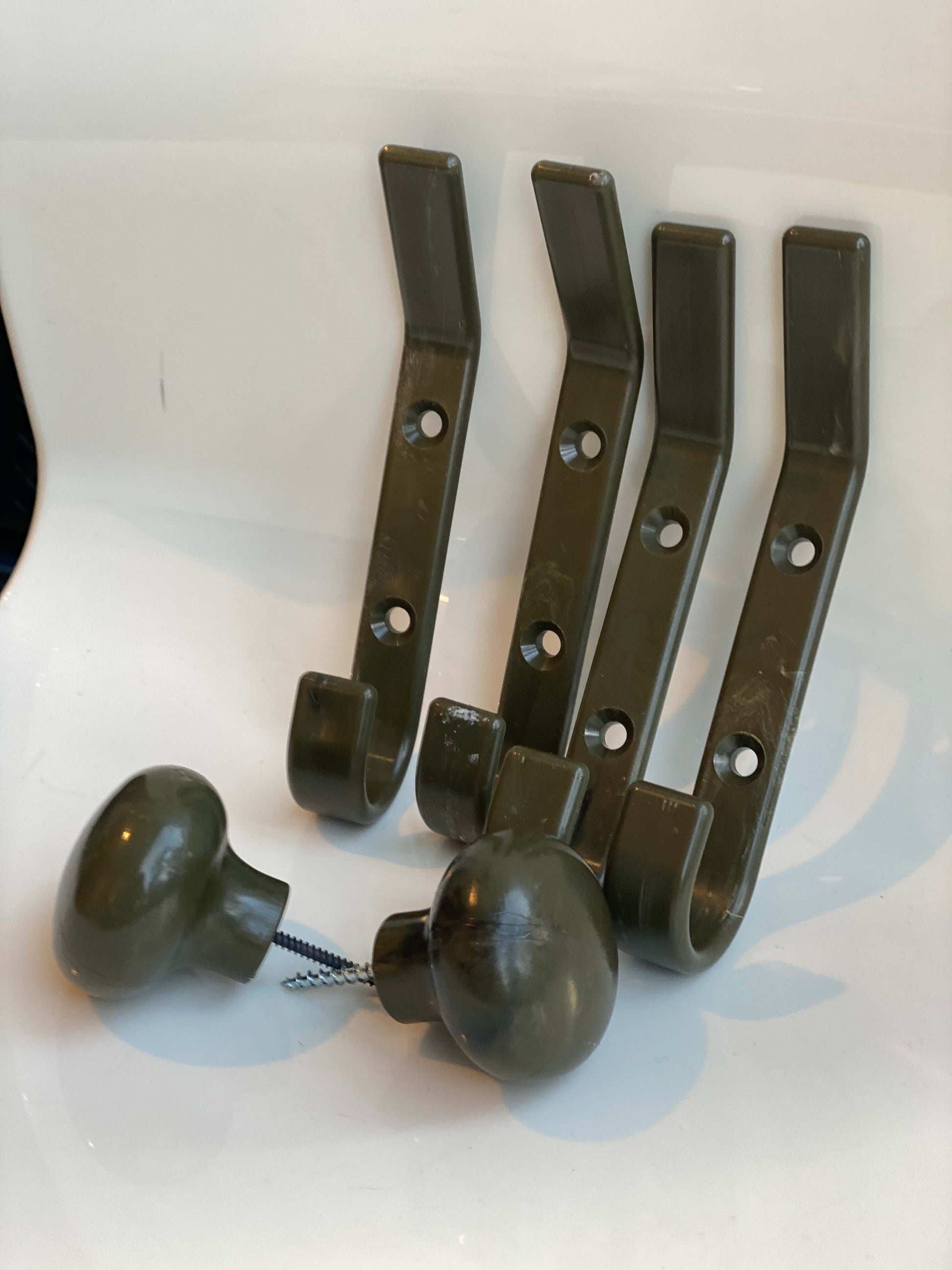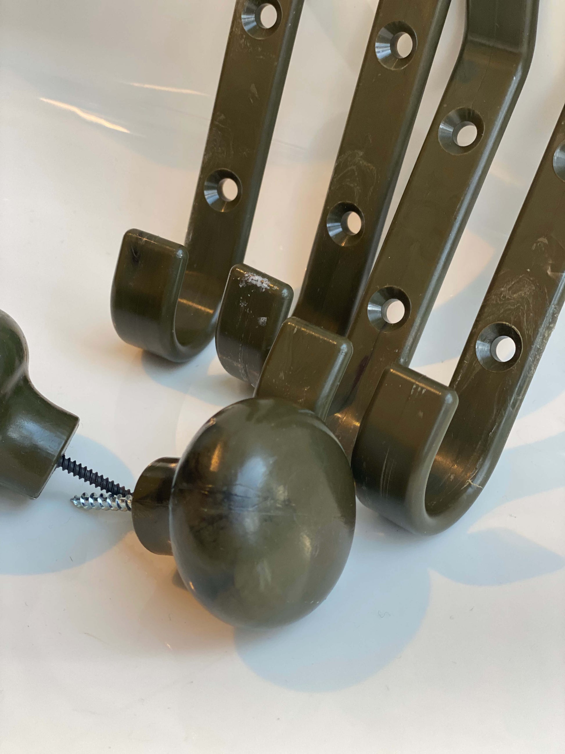 Knaggi tåler hverdagens bruk og henges opp med to skruer som du får med når du bestiller Knaggi fra Plasteriet.