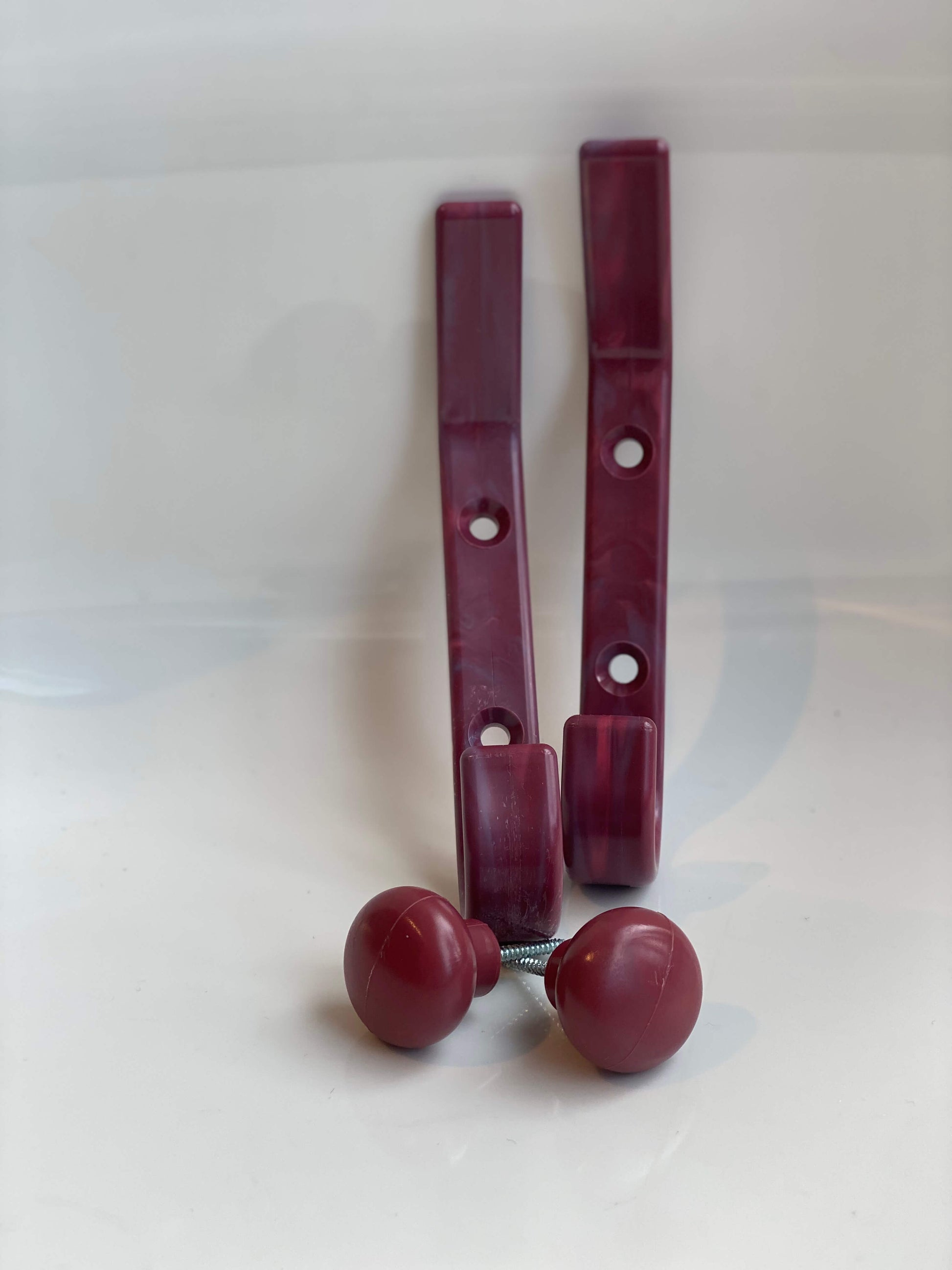 Knaggi tåler hverdagens bruk og henges opp med to skruer som du får med når du bestiller Knaggi fra Plasteriet.